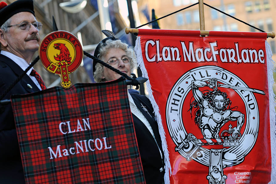 2009年7月1日,澳大利亞當?shù)氐奶K格蘭籍男女老少,頭插羽毛、身穿格子裙、吹著蘇格蘭風笛來到悉尼市中心,慶祝屬于他們的節(jié)日“蘇格蘭格子日”。