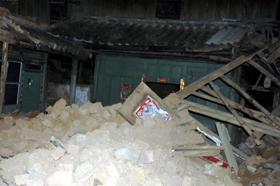圖為此次地震中受災最為嚴重的官屯鄉官屯村受損較為嚴重的民房。中新社發 保旭 攝