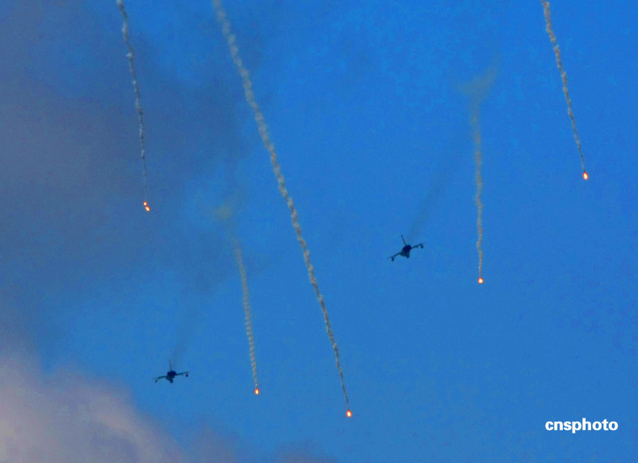 中國、俄羅斯兩軍總參謀長,7月23日上午到沈陽軍區(qū)洮南合同戰(zhàn)術訓練基地,觀看“和平使命2009”聯(lián)合反恐軍事演習。雙方以陸軍和空軍為主,中方參演部隊包括1個陸軍戰(zhàn)斗群和1個空軍戰(zhàn)斗群。俄方參演兵力包括1個陸軍加強摩步營、1個空降突擊連和部分空軍兵力,雙方投入兵力兩千多人。中新社發(fā) 宋吉河 攝