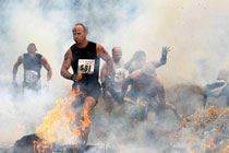 7月26日,硬漢挑戰賽在英國的伍爾弗漢普頓市舉行。這種以恐怖障礙著稱的比賽規則很簡單,勇士們通過規定的路程,誰先到達終點就是冠軍!參賽者需要在火焰中奔跑,穿越齊腰深的沼澤地,在帶刀片的鐵絲網下爬行,躍湖中,屏住呼吸穿越水下泥潭……