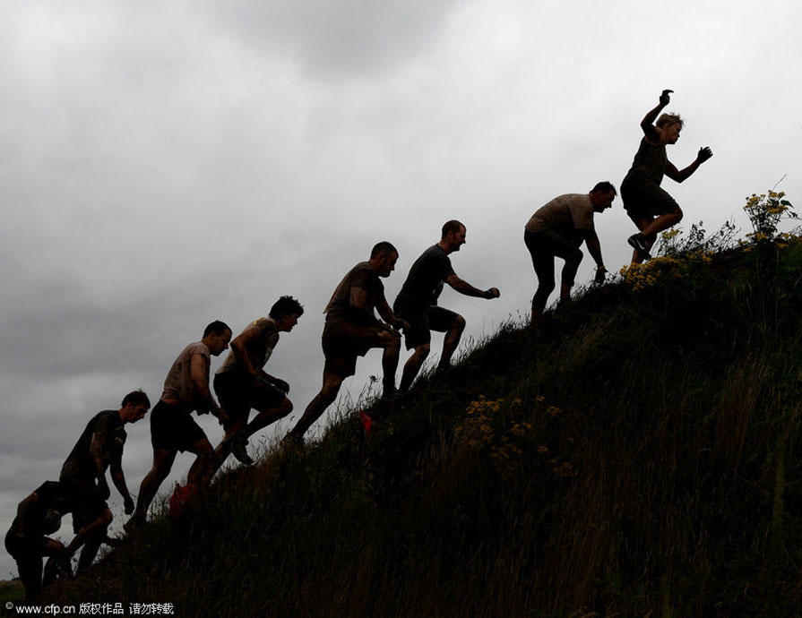 7月26日,硬漢挑戰賽在英國的伍爾弗漢普頓市舉行。這種以恐怖障礙著稱的比賽規則很簡單,勇士們通過規定的路程,誰先到達終點就是冠軍!參賽者需要在火焰中奔跑,穿越齊腰深的沼澤地,在帶刀片的鐵絲網下爬行,躍湖中,屏住呼吸穿越水下泥潭……
