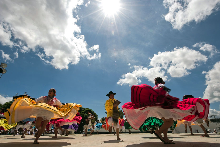 每年7月的最后兩個(gè)星期一是瓦哈卡聞名世界的“蓋拉蓋查節(jié)(Guelaguetza)”,來(lái)自瓦哈卡州各地、各具特色的印第安部落推選出具有代表性的舞蹈隊(duì),在瓦哈卡城外的弗爾丁山上載歌載舞,同時(shí)也為前來(lái)觀看的世界各地游客獻(xiàn)上本部落的土特產(chǎn)。