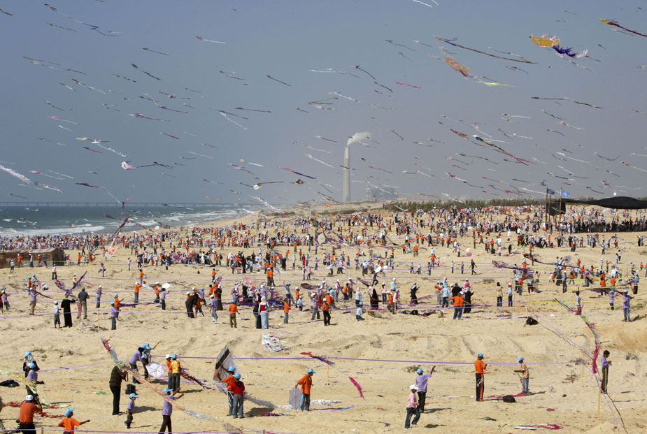7月30日,加沙地帶的6000名巴勒斯坦兒童共同在加沙北部的海灘上放飛了3000多只五顏六色的風(fēng)箏,打破了同時放飛最多只風(fēng)箏的吉尼斯世界紀(jì)錄。
