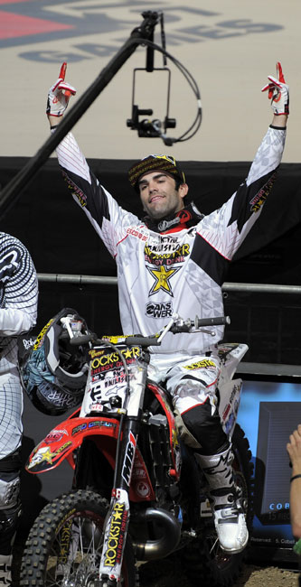 當地時間7月30日,美國洛杉磯舉行了一場極限摩托大賽,各路好手上演了摩托車跨越高桿的精彩表演。