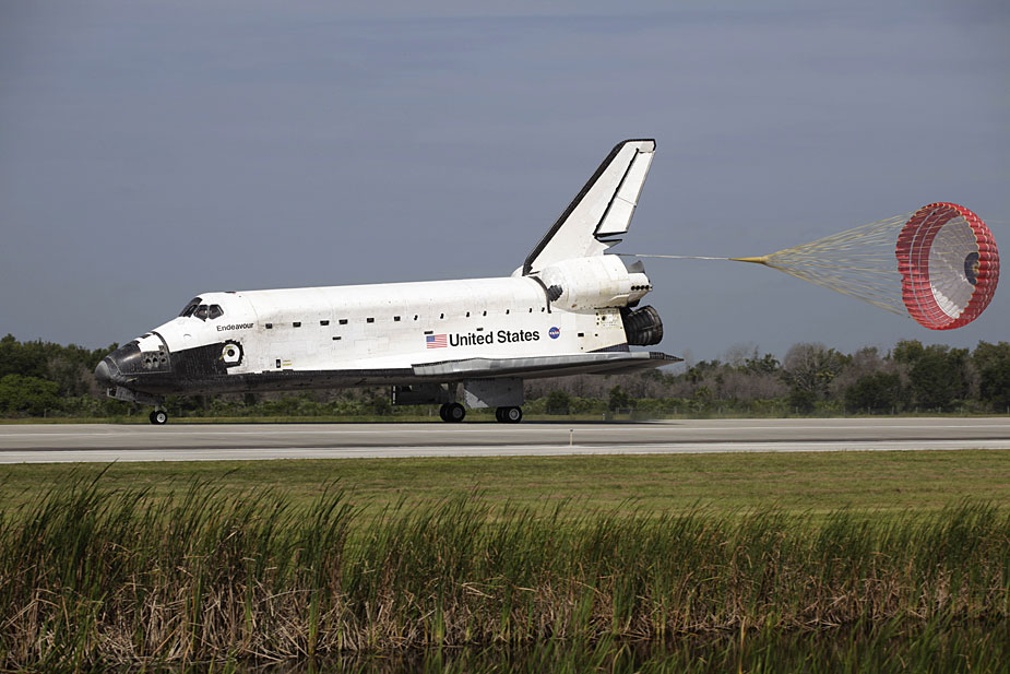 圖為奮進(jìn)號(hào)航天飛機(jī)著陸瞬間。