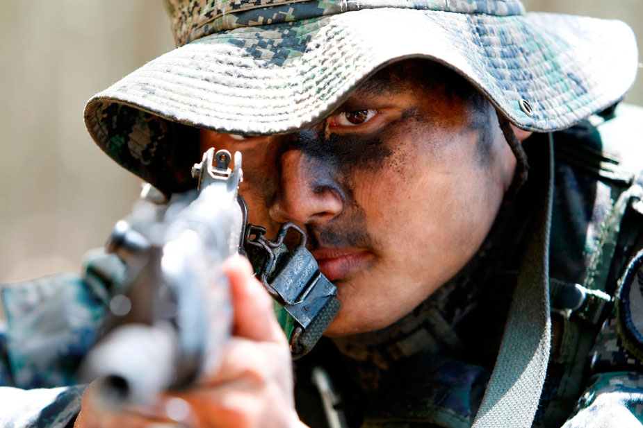 2009年8月5日,韓國(guó)特種戰(zhàn)司令部特種作戰(zhàn)分隊(duì)在南泰安郡演練海上滲透攻擊。