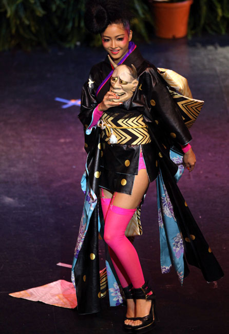 8月10日,2009年世界小姐大賽上,來自84個國家和地區(qū)的佳麗進(jìn)行民族服飾的展示,各國佳麗分別穿著含有自己民族風(fēng)格元素的時尚晚裝亮相,現(xiàn)場頓時色彩斑斕,美不勝收。