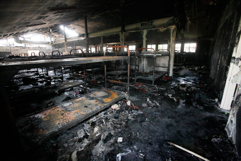 圖為燒毀的監獄宿舍床鋪。8月8日晚至9日凌晨,美國加州南部奇諾市發生大規模監獄騷亂,截至目前,在250多名受傷的在押犯人中,仍有16名犯人在醫院接受治療。