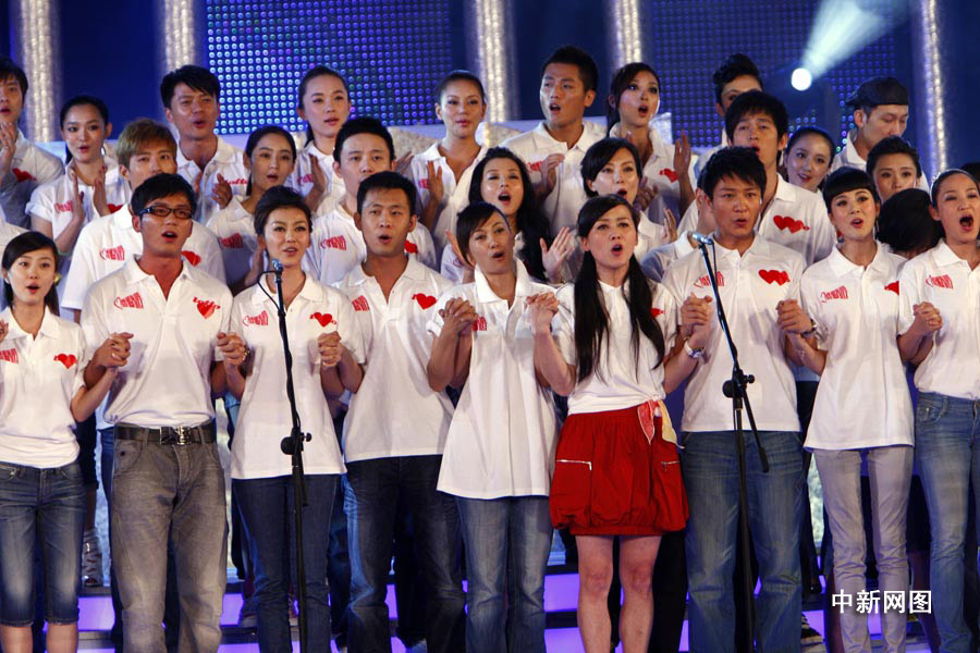 “跨越海峽的愛心”——大陸同胞援助臺灣“莫拉克”臺風受災同胞賑災晚會在北京舉行,眾多文體界明星在現場亮相。中新社發 杜洋 攝