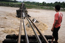 印度山洪沖走鐵路橋