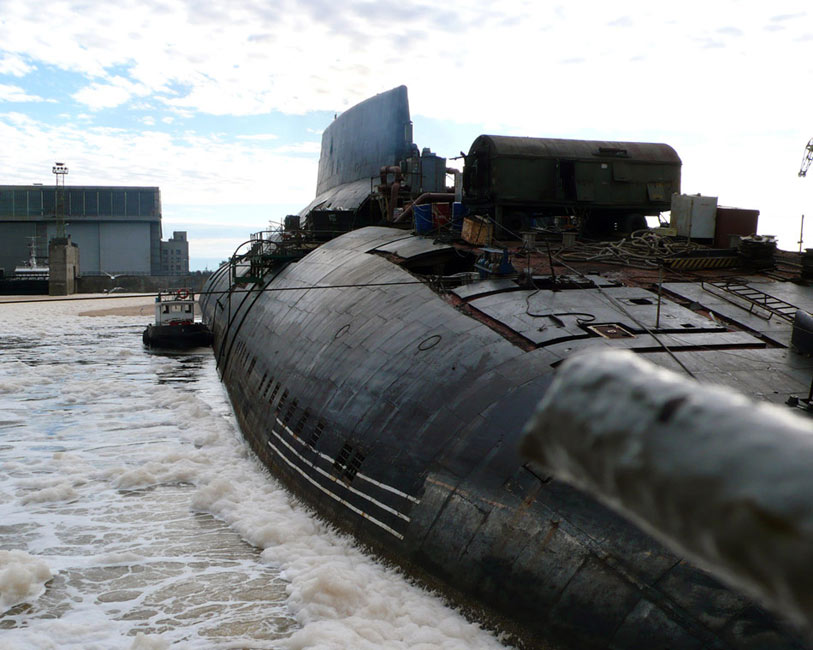 被拆解的核潛艇屬于臺(tái)風(fēng)級(jí)戰(zhàn)略核潛艇,編號(hào)TK13。2008年7月,該艇被運(yùn)抵俄羅斯北部北德文斯克的茲韋茲多奇卡(Zvezdochka)船廠(chǎng)。(環(huán)球網(wǎng))
