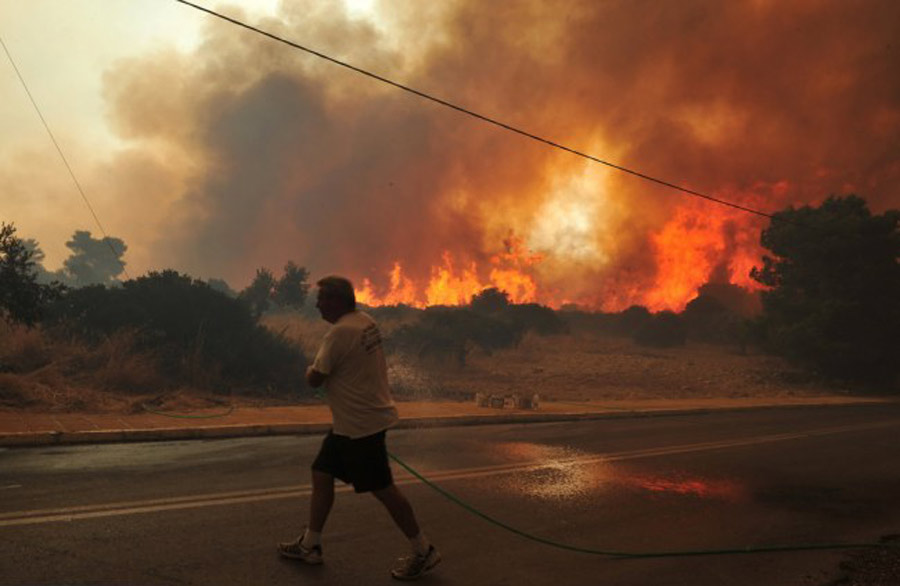 據英國媒體24日報道,希臘雅典東北部40公里外城郊上周五開始發生森林大火,由于火勢尚未受到控制,濃煙威脅附近數個城鎮。據悉當前至少上萬人逃離家園避難。