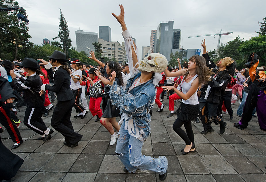 8月29日,逾萬名墨西哥人在墨西哥城廣場同時跳舞,用以紀念邁克爾·杰克遜第51個“生日”,同時也試圖打破同時跳舞人數最的吉尼斯世界紀錄。圖片來源:中國新聞網