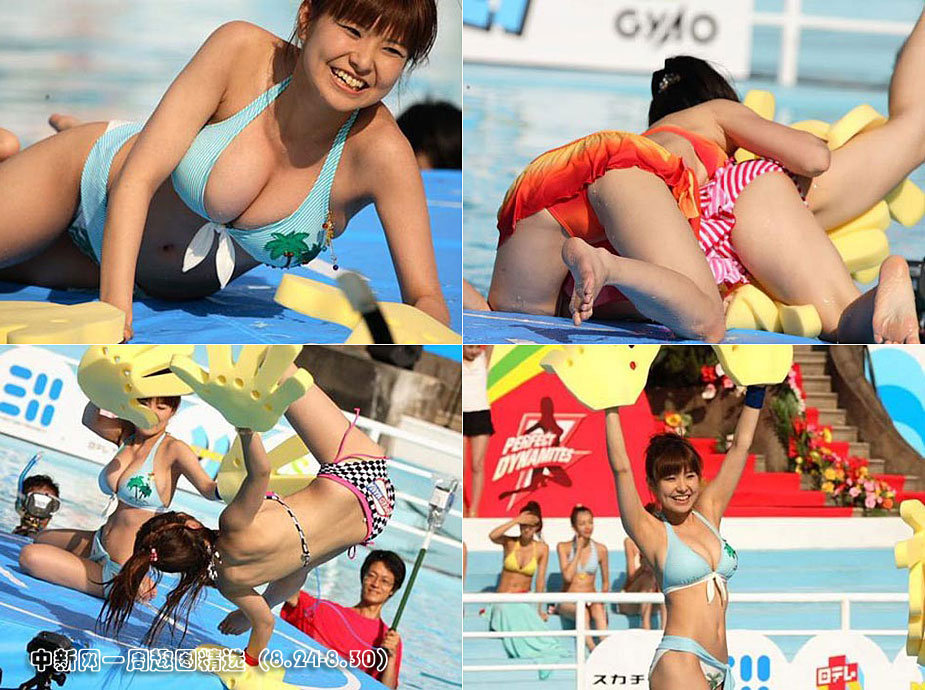 炎炎夏日,日本的比基尼美女們。在水上來一場趣味摔跤大賽,令人體會到夏日的激情,又不失一分涼爽。圖片來源:金羊網(wǎng)