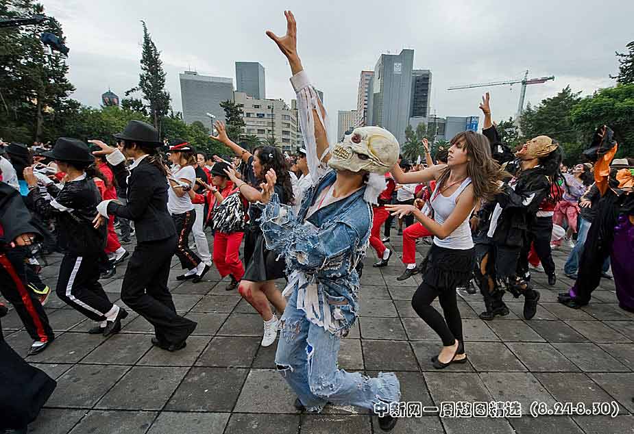 逾萬名墨西哥人在墨西哥城廣場同時跳舞,用以紀念邁克爾·杰克遜第51個“生日”,同時也試圖打破同時跳舞人數(shù)最的吉尼斯世界紀錄。圖片來源:中國新聞網(wǎng)