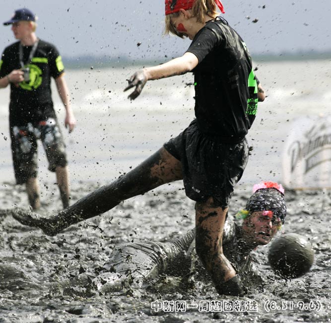 德國北部海邊小鎮Brunsbuettel的泥灘上進行一場別開生面的泥地足球賽。圖片來源:中國新聞網