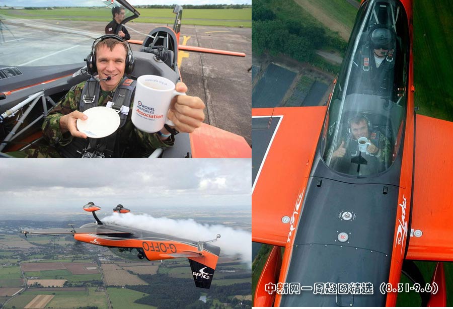 9月3日,英國皇家空軍考斯福德基地,空軍現役軍人StewartHefti與刀鋒飛行表演隊進行了一場特技表演。圖片來源:中國網