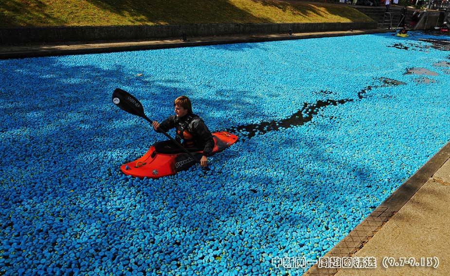 9月6日,英國(guó)倫敦當(dāng)日舉行了一場(chǎng)“大英賽鴨活動(dòng)”。此次活動(dòng)中,大約有20.5萬(wàn)只藍(lán)色橡膠鴨子漂浮在泰晤士河上,這也打破了現(xiàn)有的20萬(wàn)只鴨子漂流的世界紀(jì)錄。圖片來(lái)源:中國(guó)新聞網(wǎng)