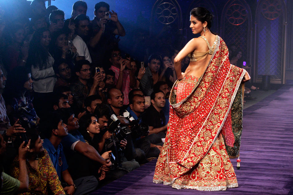 9月13日,主題名為“地球時裝”的時裝周在印度加爾各答開幕,時裝周上模特們展示了設(shè)計(jì)師馬尼什·馬爾霍特拉的作品。來源:中國新聞網(wǎng)