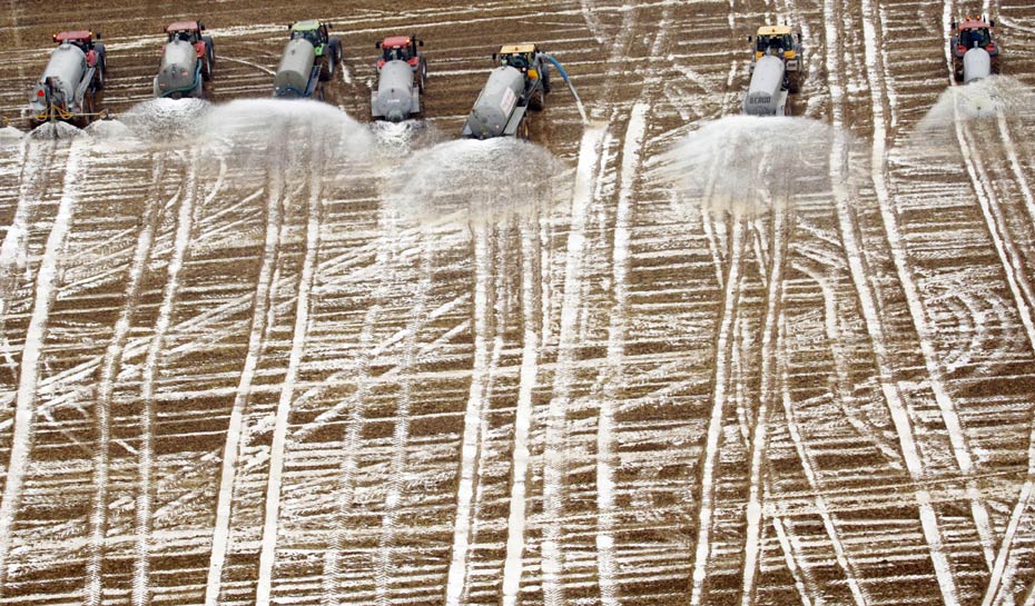 16日,比利時(shí)奶農(nóng)向地里傾倒了3百萬升鮮牛奶做“農(nóng)肥”,抗議奶價(jià)暴跌。奶農(nóng)們認(rèn)為,提高牛奶生產(chǎn)配額造成歐盟市場(chǎng)上奶制品供大于求,進(jìn)而引發(fā)價(jià)格暴跌。來源:中國新聞網(wǎng)