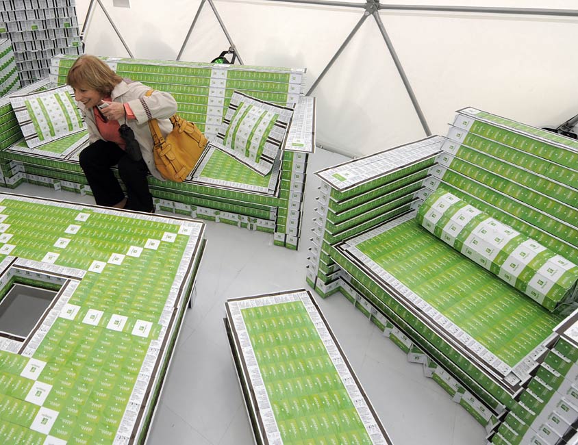 9月17日,在美國紐約,一位名叫布賴恩的設計師展示他利用房門卡設計的客房。這個占地約37平方米的酒店接待大廳、臥室和衛生間是利用20多萬張房門卡搭建而成的。
