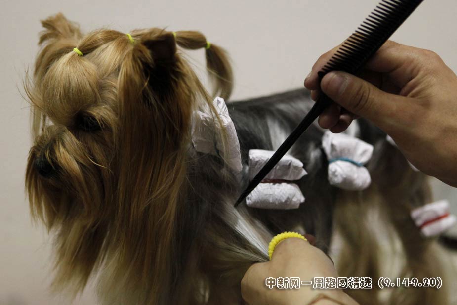 當地時間9月17日,在墨西哥首都墨西哥城舉行了2009國際小狗競選大賽。眾多參賽的小狗紛紛“梳妝打扮”準備參加國際小狗競選。圖片來源:中國新聞網