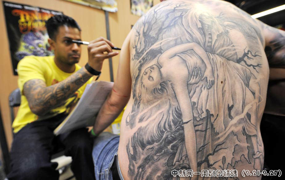 法國(guó)巴黎9月20日舉行“紋身藝術(shù)節(jié)”,吸引了成百上千紋身藝術(shù)大師到場(chǎng)獻(xiàn)藝。圖片來(lái)源:中國(guó)新聞網(wǎng)