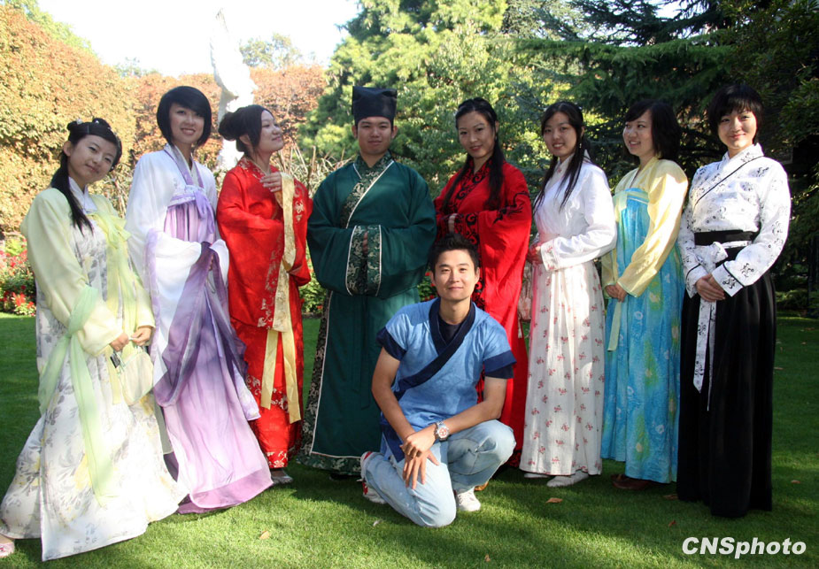 當(dāng)?shù)貢r(shí)間9月27日,來自法國(guó)、英國(guó)、德國(guó)和荷蘭的20多名中國(guó)留學(xué)生會(huì)聚巴黎盧森堡公園,換上嶄新的漢服,然后列隊(duì)向巴黎圣母院、埃菲爾鐵塔、盧浮宮和香榭麗舍大道等法國(guó)著名景點(diǎn)出發(fā)。他們以漢服巡游這種特殊方式宣傳中國(guó)文化,迎接新中國(guó)六十華誕的到來。 中新社發(fā) 吳衛(wèi)中 攝
