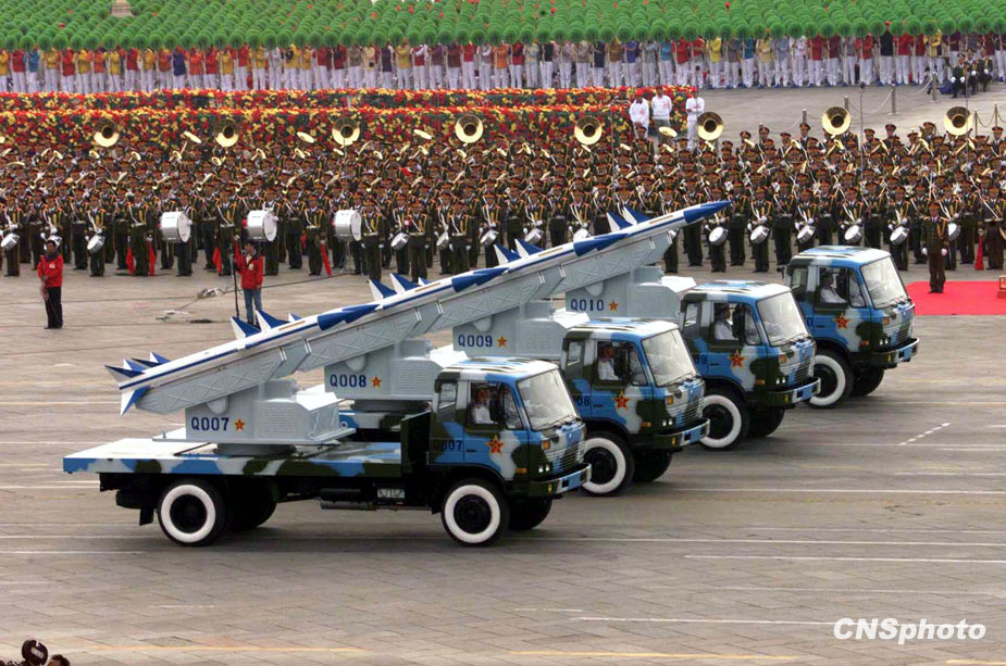 圖為1999年國慶閱兵式上海軍導彈方隊從天安門前走過。 中新社發 李剛 攝