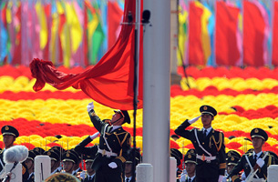 國慶60周年閱兵10月1日上午在天安門廣場成功舉行。由人民解放軍、武裝警察部隊和民兵預備役部隊8000余名官兵組成的受閱方陣接受檢閱。 點擊觀看更多