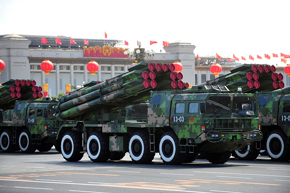 2009年10月1日,中華人民共和國成立60周年慶祝大會在北京天安門廣場舉行。圖為遠程火箭炮方隊。
