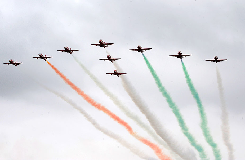 10月6日,印度空軍在新德里郊區(qū)的加濟(jì)阿巴德地區(qū)進(jìn)行了精彩的飛行表演。這次飛行表演是為了迎接印度空軍建軍77周年慶典舉行的彩排式。圖片來源:中國新聞網(wǎng)