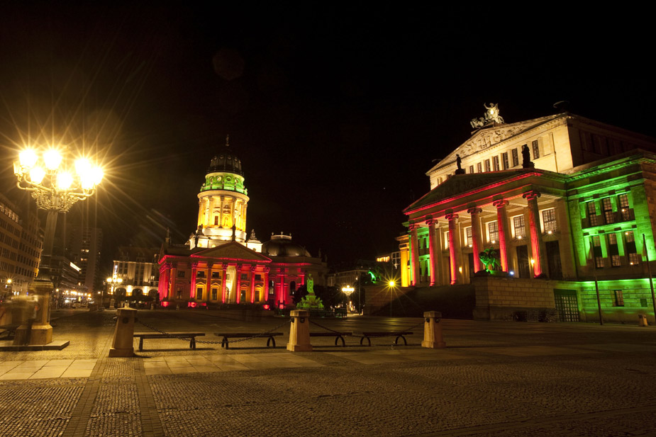 10月14日德國柏林將迎來一年一度的“燈節(jié)”。13日晚在德國首都柏林,柏林音樂廳在“燈節(jié)”預演中被五彩燈飾照亮。
