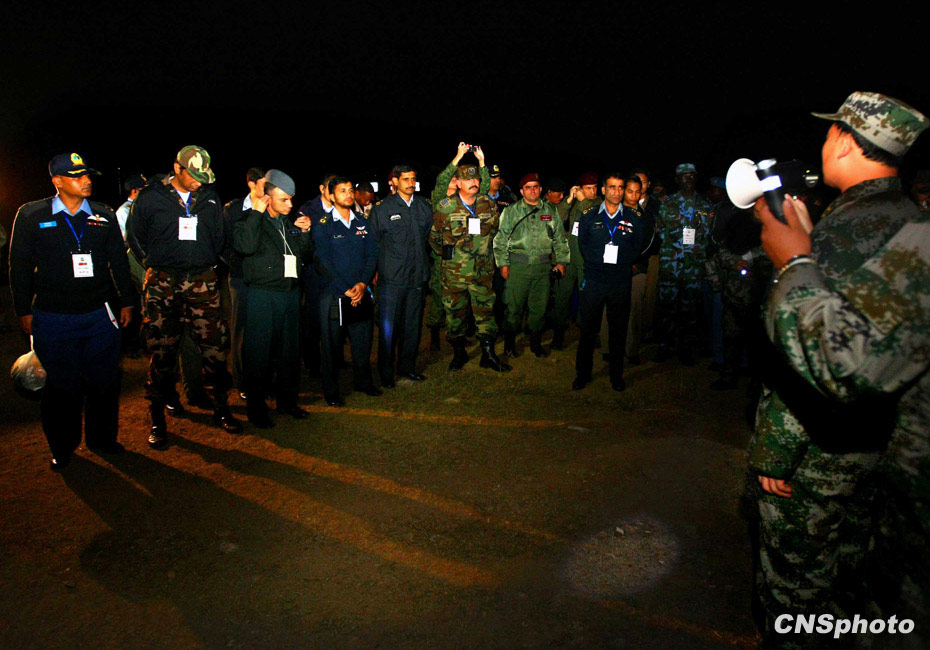 當(dāng)晚國防大學(xué)防務(wù)學(xué)院、空軍指揮學(xué)院的外軍學(xué)員,以及英國、以色列、土耳其、巴基斯坦等國軍事觀察員親臨現(xiàn)場觀摩了后勤保障戰(zhàn)斗準(zhǔn)備、自行榴彈炮占領(lǐng)陣地、裝甲車輛“摸黑”開進(jìn)等戰(zhàn)斗要素。圖為參觀后勤保障基地。中新社發(fā) 宋吉河 攝
