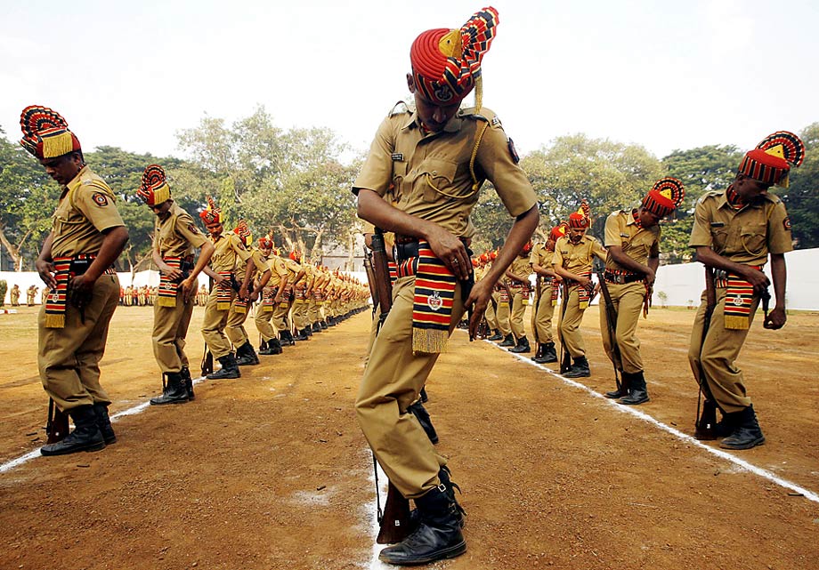 周三(21日),印度孟買,警方在一個(gè)紀(jì)念日上準(zhǔn)備拔槍開火,向去年執(zhí)行任務(wù)中喪生的同僚表示敬意。 來源:中國新聞網(wǎng)