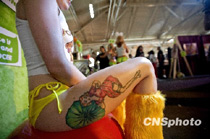 2009年10月23日,澳大利亞悉尼,來自紐約的全男班惹笑芭蕾舞團The Trocks在噴泉邊起舞。高超的足尖技巧,優美的芭蕾舞姿,加上怪異的動作滑稽的表情,這些美國男子芭蕾演員們用一種另類的表現力顛覆了人們心中優雅高貴的印象,讓觀眾欣賞傳統以外的男扮女裝芭蕾舞表演。