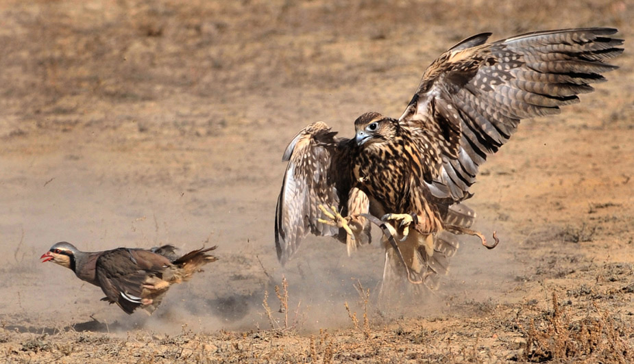 10月30日,在吉爾吉斯斯坦Bokonbayevo傳統(tǒng)的狩獵節(jié)上,一只捕獵鳥(niǎo)在追獵物。圖片來(lái)源:中國(guó)新聞網(wǎng)