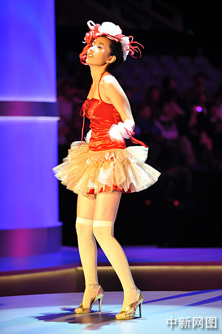 10月31日晚,“2009中華小姐環(huán)球大賽”總決賽上,12名入圍總決賽的佳麗身著迷你裙大秀性感爵士舞。中新網(wǎng)記者 金碩 攝
