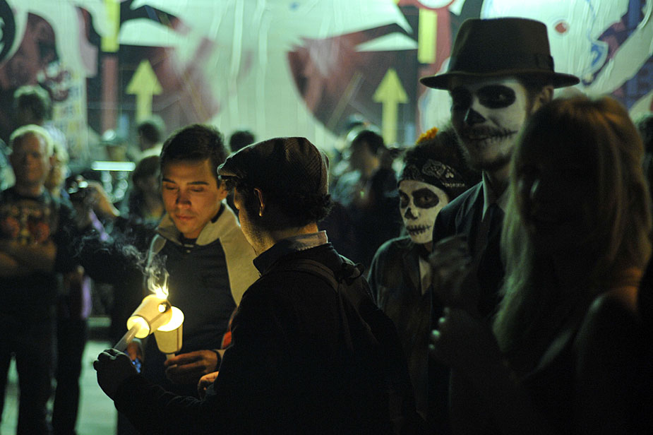11月2日,美國舊金山居民扮成鬼怪模樣慶!巴鲮`節”!巴鲮`節”是拉美地區的傳統節日,類似于中國的清明節。來源:中國新聞網
