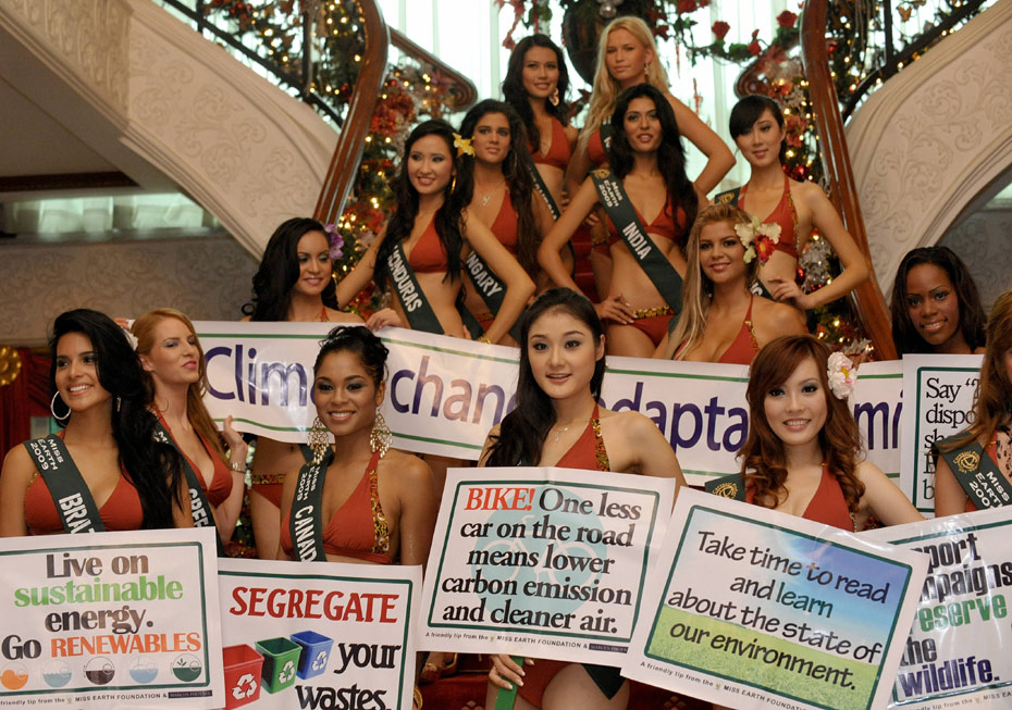 2009世界綠色環保大使小姐決賽在菲律賓進行,來自世界各地的90名佳麗參與角逐。世界綠色環保大使(地球小姐)評選,是全世界唯一以“綠色環保”為主題注冊的國際頂級權威大賽,由菲律賓總統阿羅約創始。圖片來源:中國新聞網