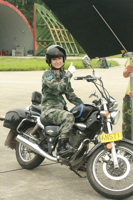 11月12日,北京,為配合慶祝人民空軍成立60周年活動,由八一電影制片廠著名導演寧海強擔綱執導,黃奕主演的軍事動作大片電影《殲十出擊》即將上映。在這部大量表現戰斗機空戰場面的軍事題材電影里,黃奕在片中的主要工作是檢查維護殲十戰斗機的機械運轉,保證安全飛行,就是通常所說的機務工作。穿上正統的空軍女上尉軍服,肩扛一杠三星,英姿颯爽的黃奕顯得無比自豪。