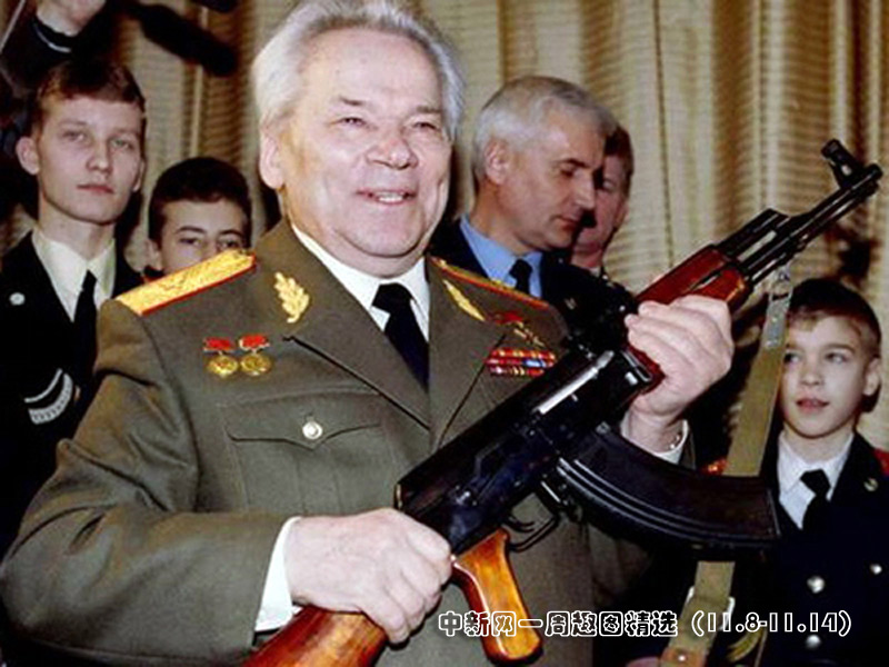 11月11日,AK-47突擊步槍的發明者米哈伊爾·卡拉什尼科夫在俄羅斯莫斯科慶祝90歲生日。>>點擊觀看詳細內容