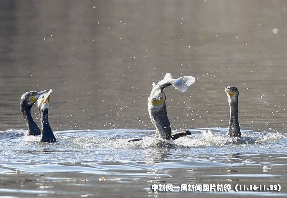 2009年11月19日,德國斯圖加特鸕鶿捕魚瞬間。圖片來源:中國新聞網(wǎng)