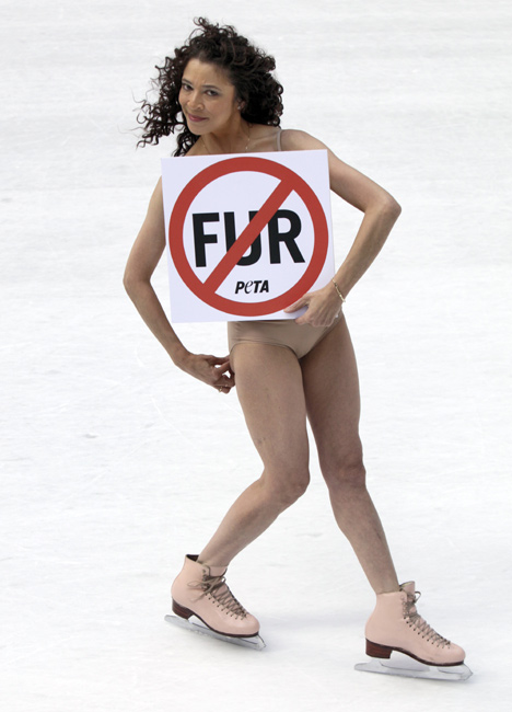 11月24日,美國花樣滑冰的傳奇人物、1979年世界花滑錦標賽冠軍得主芭比洛尼在紐約洛克菲勒廣場復出“裸滑”。這次表演是為了支持善待動物協會的反對皮草行動。