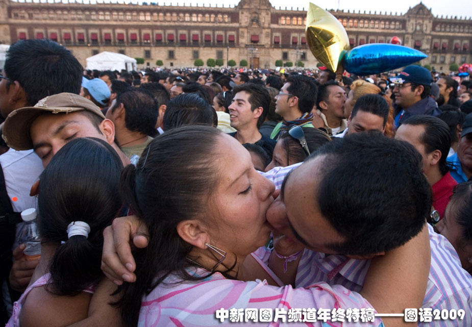 世界最多愛侶接吻:2月14日,墨西哥首都墨西哥城32000對愛侶在索卡洛廣場同時接吻打破了吉尼斯紀錄。圖片來源:中國新聞網