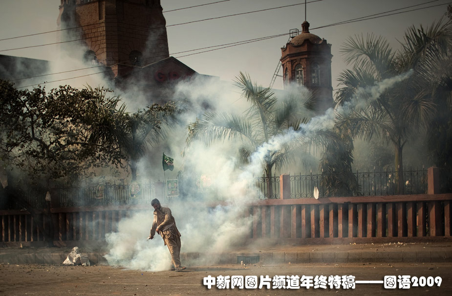 3月15日,一位巴基斯坦民眾被炸彈的煙霧籠罩。