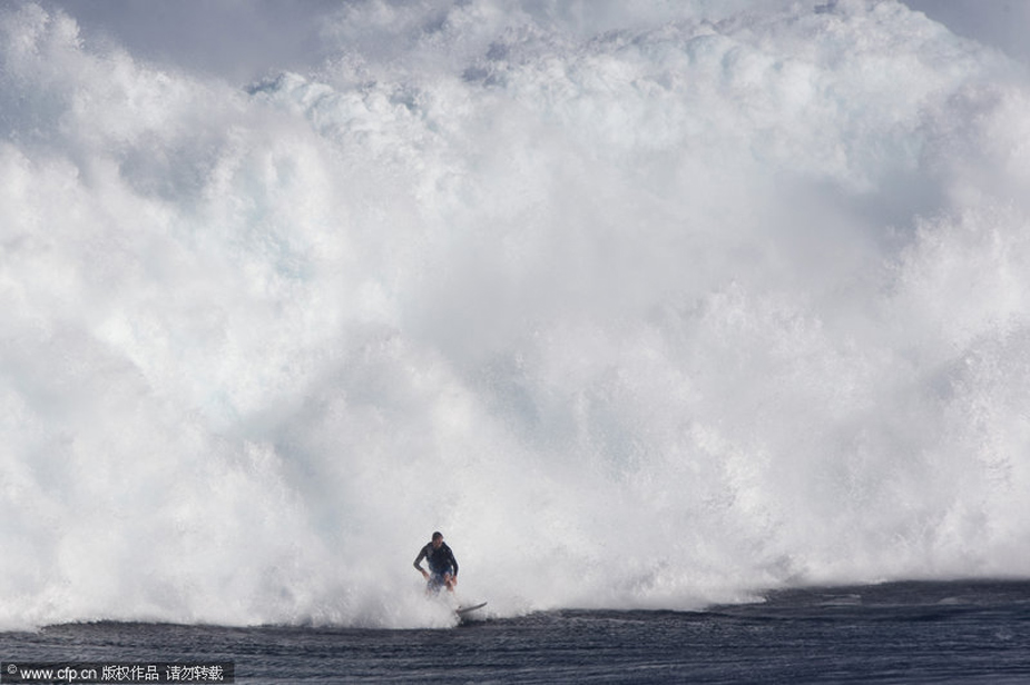 12月8日,美國夏威夷出現(xiàn)15米高罕見巨浪,一些勇敢的沖浪者都來到這里進行挑戰(zhàn)。圖片來源:CFP
