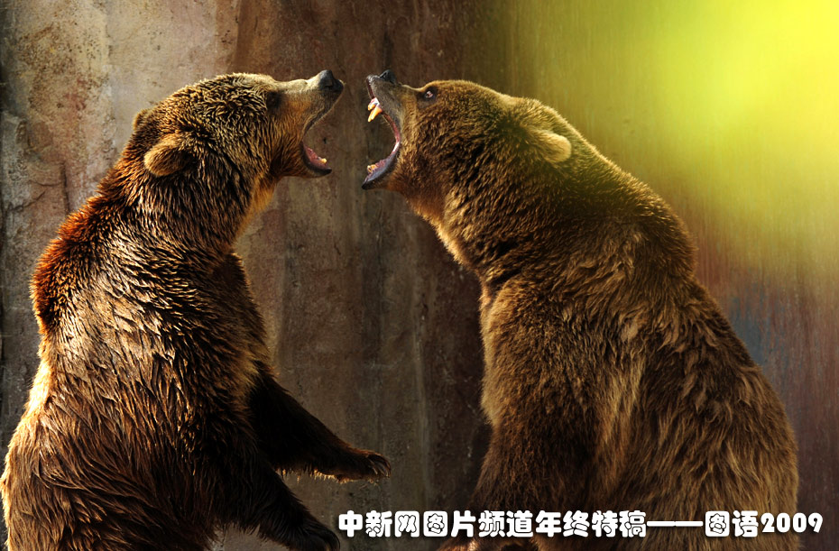 西班牙馬德里動物園內,兩只灰熊“爆發戰爭”。