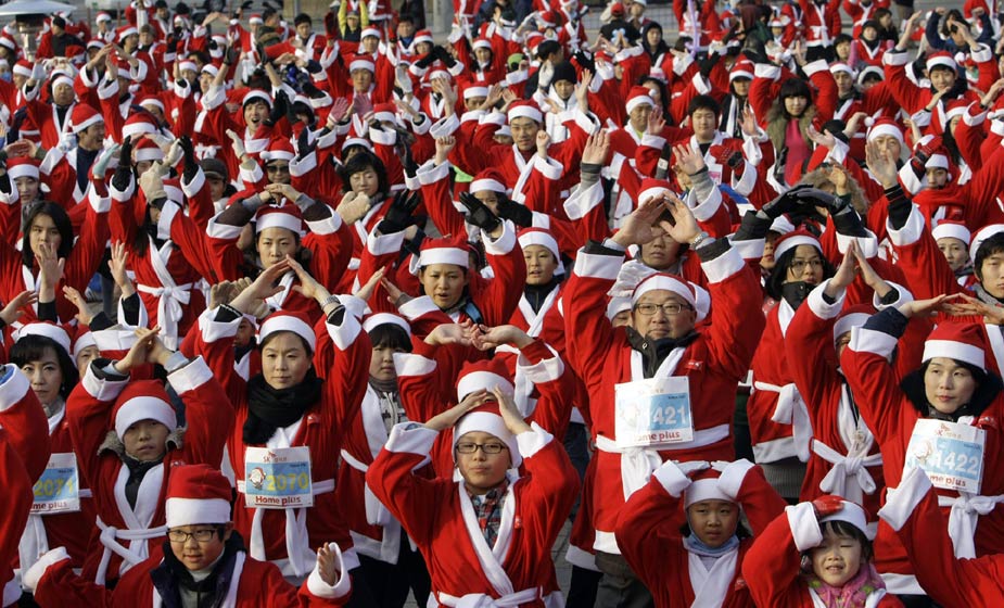 12月12日,“圣誕老人”馬拉松賽跑當日在首爾舉行。超過一千名“圣誕老人”參加了此次長跑活動。