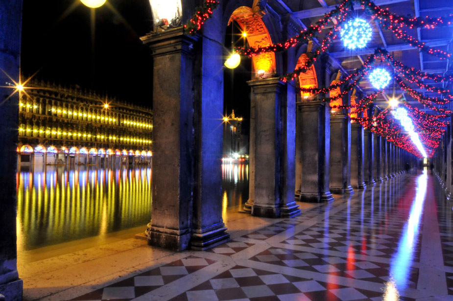 12月25日,意大利水城威尼斯圣馬可廣場(chǎng)被洪水浸泡。自從11月份以來(lái),水城威尼斯受潮汐和一股強(qiáng)烈的熱帶風(fēng)暴影響屢遭洪水“淹沒(méi)”。圖片來(lái)源:中國(guó)新聞網(wǎng)